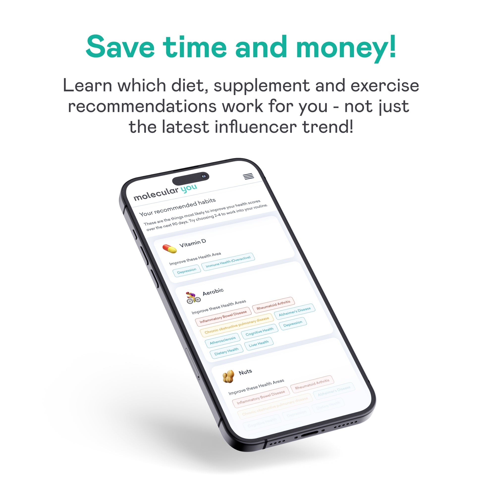- Save Time And Money - Get personalized recommendations on diet, supplements, and exercise to optimize your health